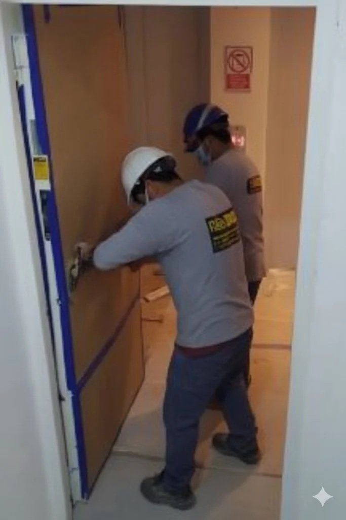 Contamos con un equipo técnico especializado en la instalación de puertas cortafuego, garantizando un montaje correcto, seguro y conforme a las normativas vigentes.